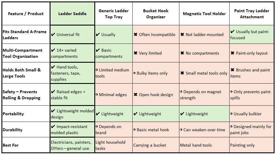 See how the Ladder Saddle compares to the Competitors. Hands-down, the Ladder Saddle has the clear advantage. The Ladder Saddle is YOUR solution for making projects safer, faster, and more efficient!